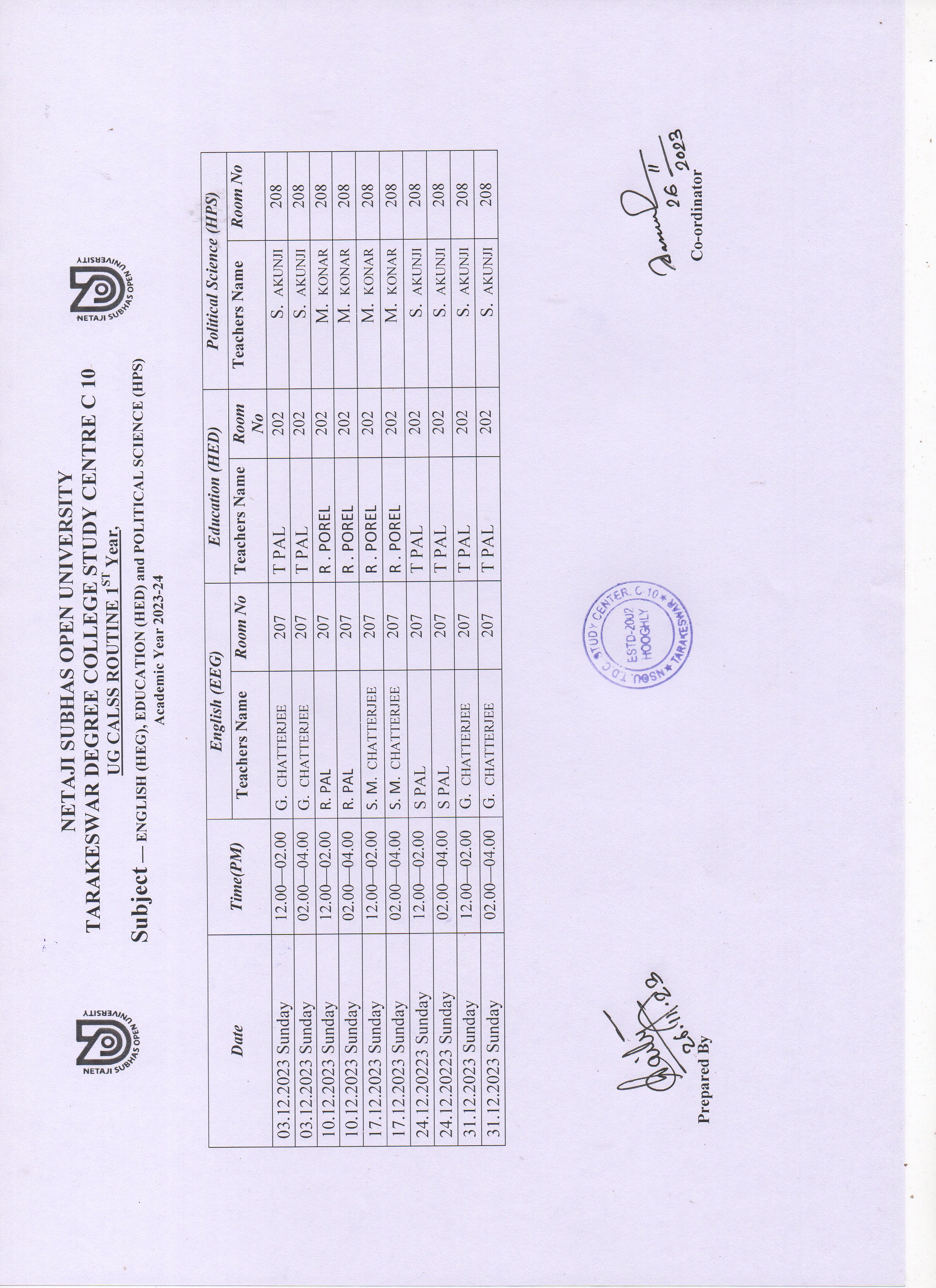 UG CLASS ROUTINE 2023-24 Subject — ENGLISH (HEG), EDUCATION (HED) and POLITICAL SCIENCE (HPS) Face to Face Counselling2023-11-26: CLICK HERE